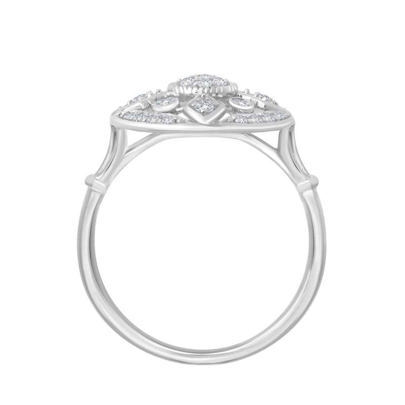 Inspirée par l'architecture Art Déco, la bague Yvette est majestueuse. Les motifs de son dôme serti de diamant nous renvoient avec plaisir dans le chic des années 30.