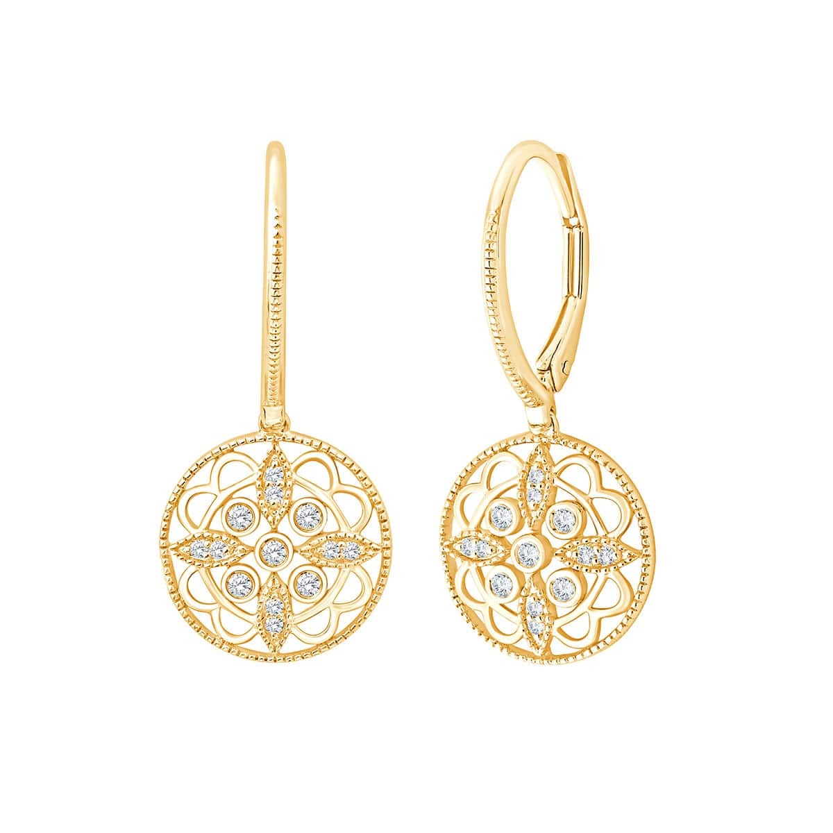 Inspirées par l'architecture Art Déco, les boucles d'oreilles Denise sont travaillées comme une dentelle sertie de diamants dont les espaces ajourés dessinent une fleur.