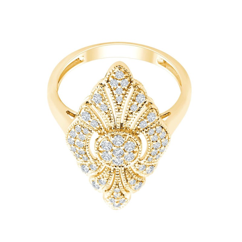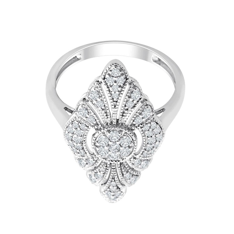 La bague Madeleine reprend les motifs des broderies des tenues de soirées des années 30. Un design rythmé et étincelant de diamants.