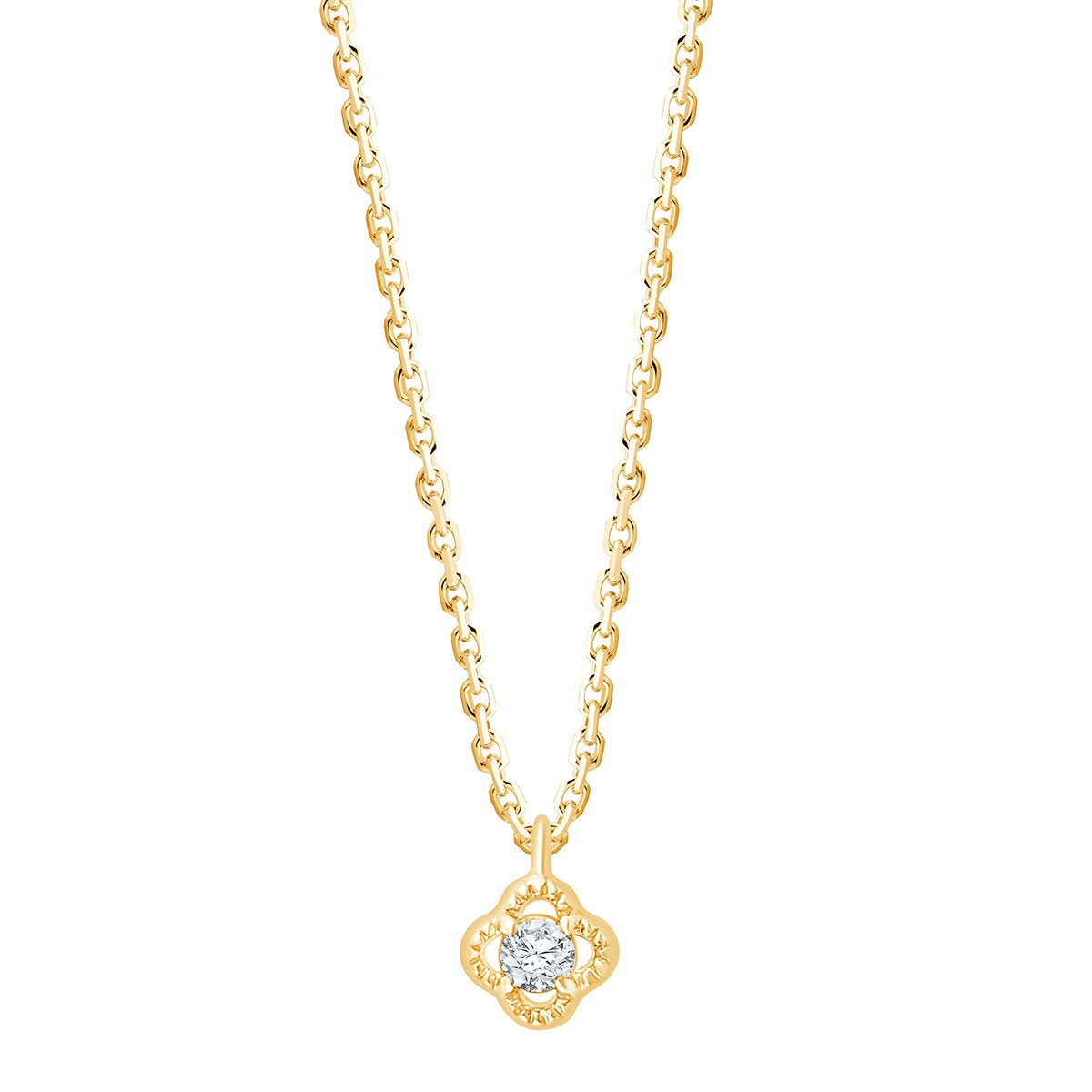 Avec ce collier nous avons souhaité revisiter le symbole de la chance en travaillant l'or pour que les trèfles soient délicatement perlés.