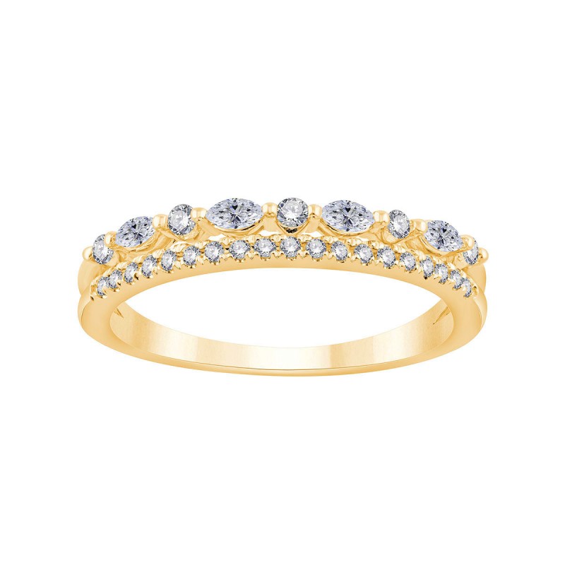 Le design de cette alliance s'inspire des couronnes royales sans être ostentatoire . Des diamants taille marquise et brillant mettent en lumière 2 anneaux d'or qui se relient entre eux par le bas.