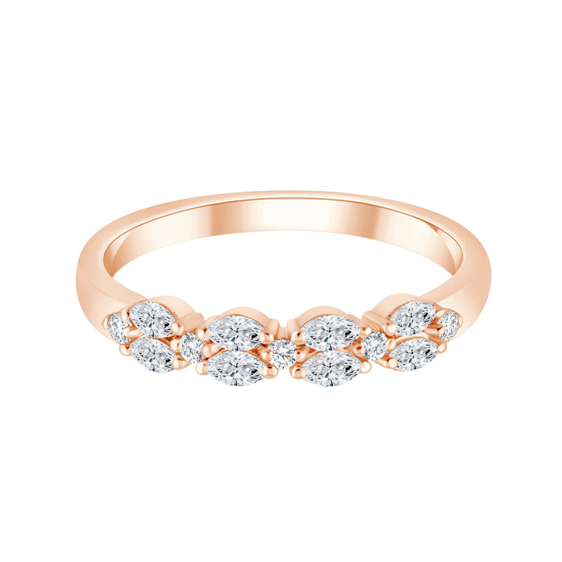 Les alliances Primavera sont une touche féminine et lumineuse sur votre doigt. Sur ce modèle, nous avons serti des diamants taille brillant et taille navette pour donner une tonalité discrètement vintage.