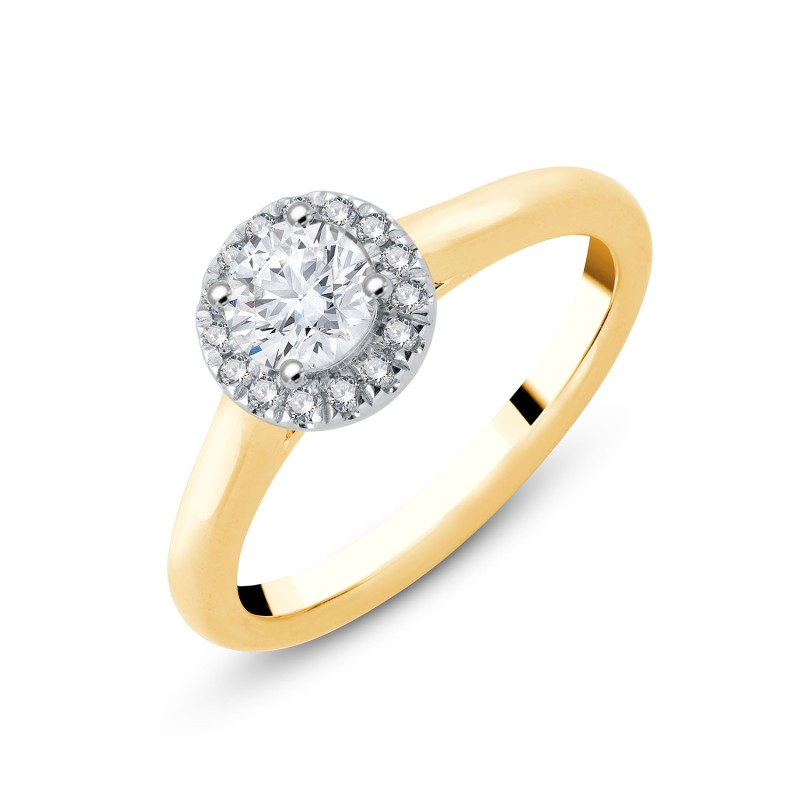 Maya est une bague de fiançailles dont la monture a été conçue pour être très confortable à porter. Les 15 diamants qui dessinent un halo se mêlent à la pierre de centre certifiée de 0.50 carat et accentue son éclat.