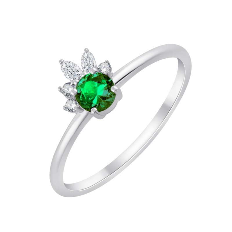Bague Prima ornée d'une Emeraude ronde de 0,22 carats et de 5 diamants d'un poids total de 0,08 carats