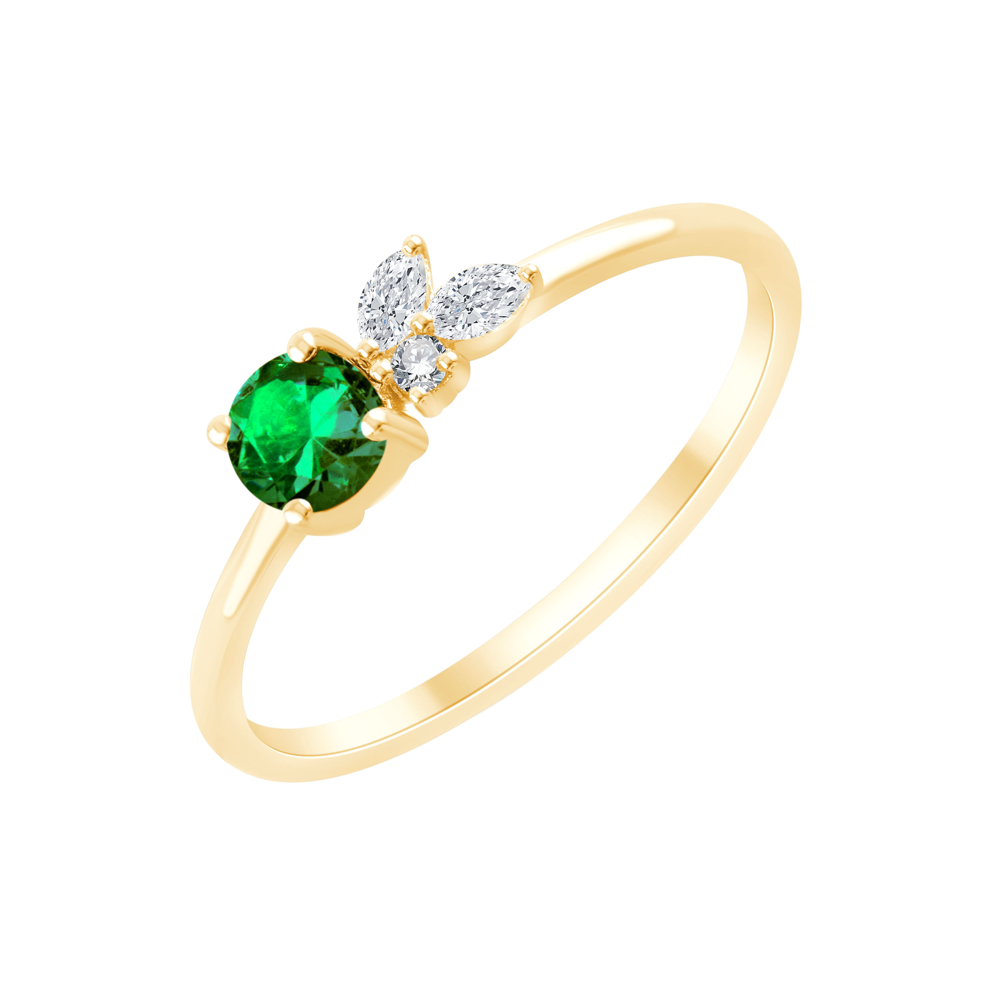 Bague Prima ornée d'une Emeraude ronde de 0,22 carats et de 5 diamants d'un poids total de 0,05 carats