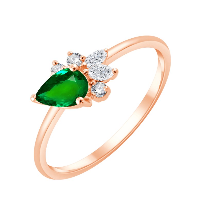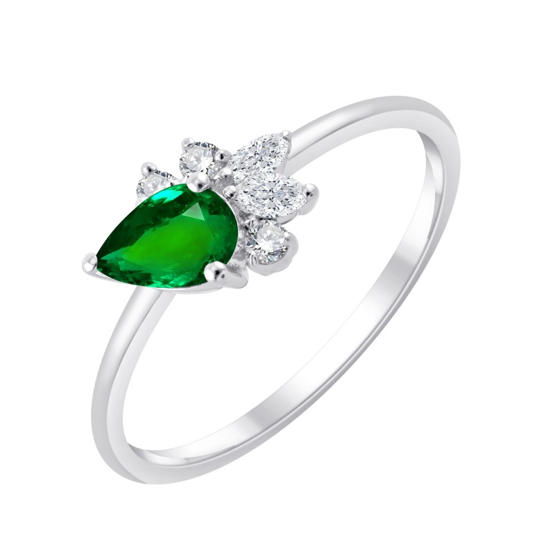 Bague Prima ornée d'une Emeraude taille poire de 0,60 carats et de 5 diamants d'un poids total de 0,09 carats