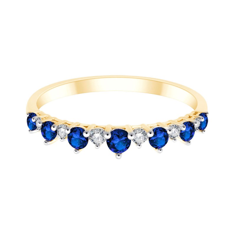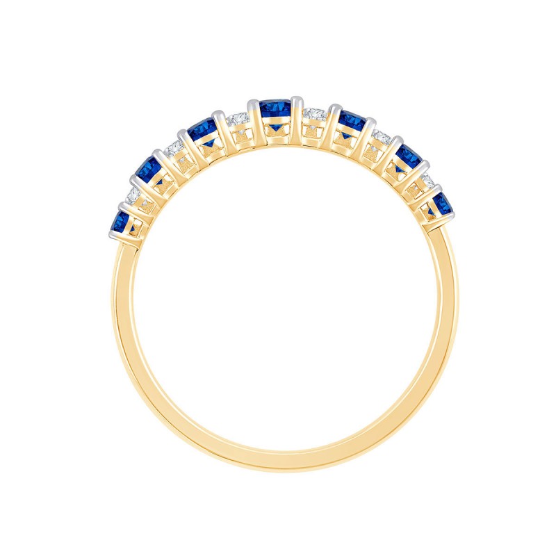 Diamants et saphirs sont sertis en alternance sur un anneau en or 18 carats. Les griffes se font discrètes pour laisser la part belle au rythme créé par ce précieux duo. Les pierres sont libres, comme suspendues à un fil précieux.