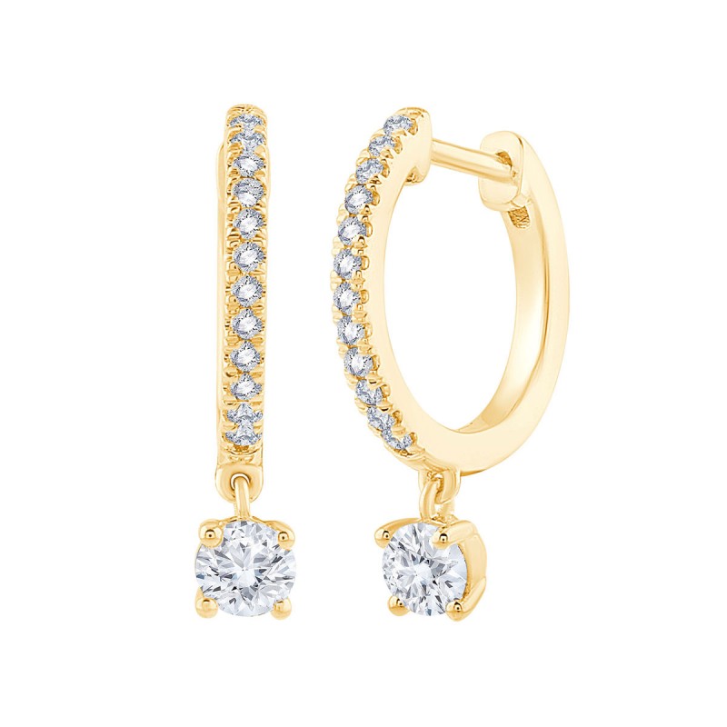 La ligne Lucky reprend les codes des grands classiques et insufle une touche de modernité en sertissant un diamant comme une pampille qui brille au gré de vos mouvements. Ce modèles es décliné avec des diamants taille brillant, poire, émeraude, princesse ou encore ovale.