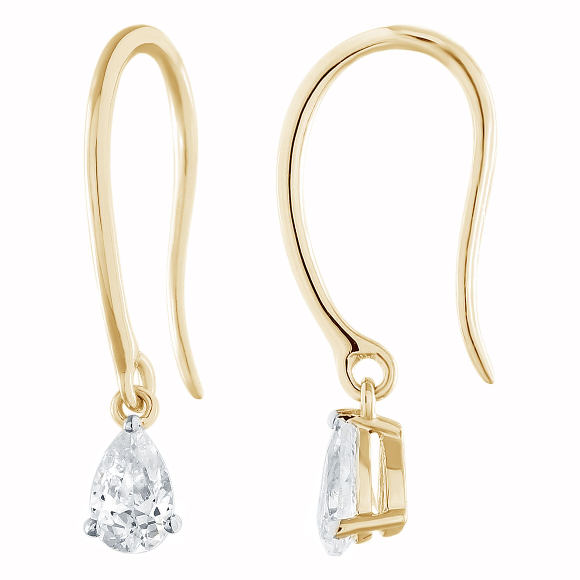 Dormeuses Isma en or 750 millièmes sertie de deux diamants taille poire suspendus et en mouvement.