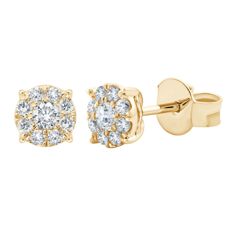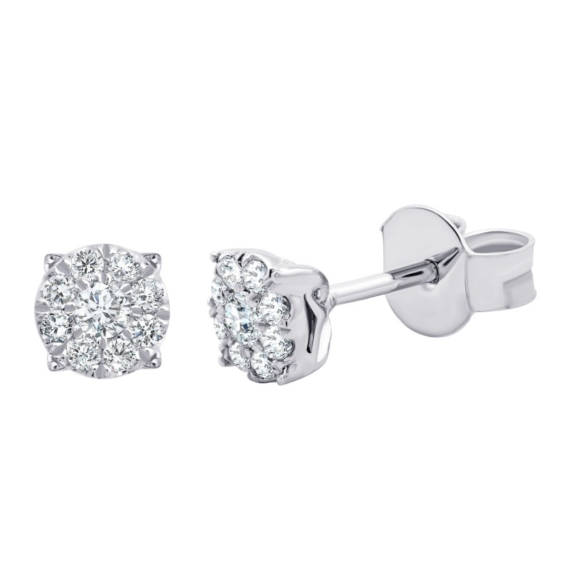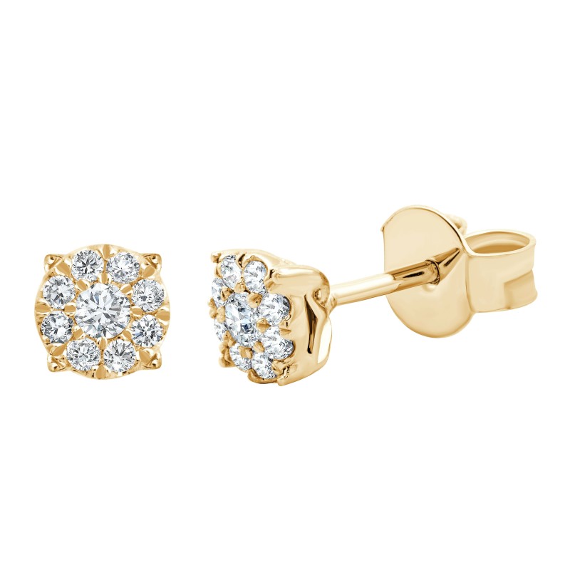 Un diamant central entouré de diamants pour un effet brillance-prix maximum.