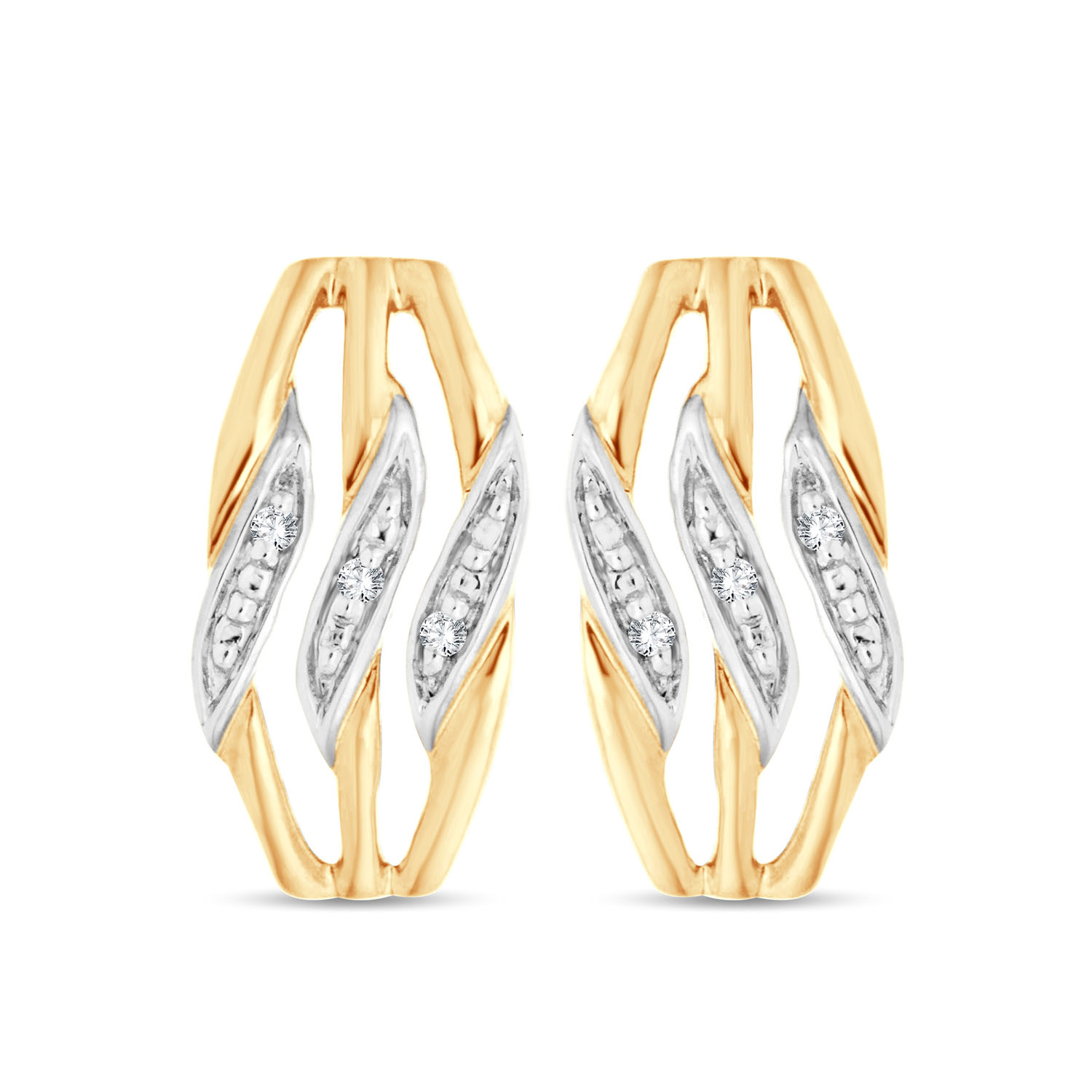 Boucles d'oreilles or jaune rhodié 9 kt et diamants.