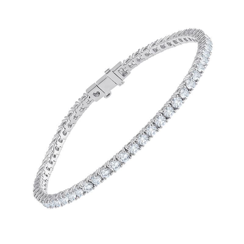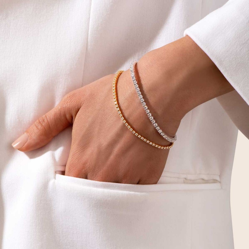 Pièce incontournable de la joaillerie, ce bracelet rivière de diamant créés en laboratoire est notre bracelet coup de coeur. Les diamants sont sertis sur des chatons 4 griffes soudés les uns avec les autres et scintillent à votre poignet. Ce bracelet rivière est souple et très agréable à porter.
