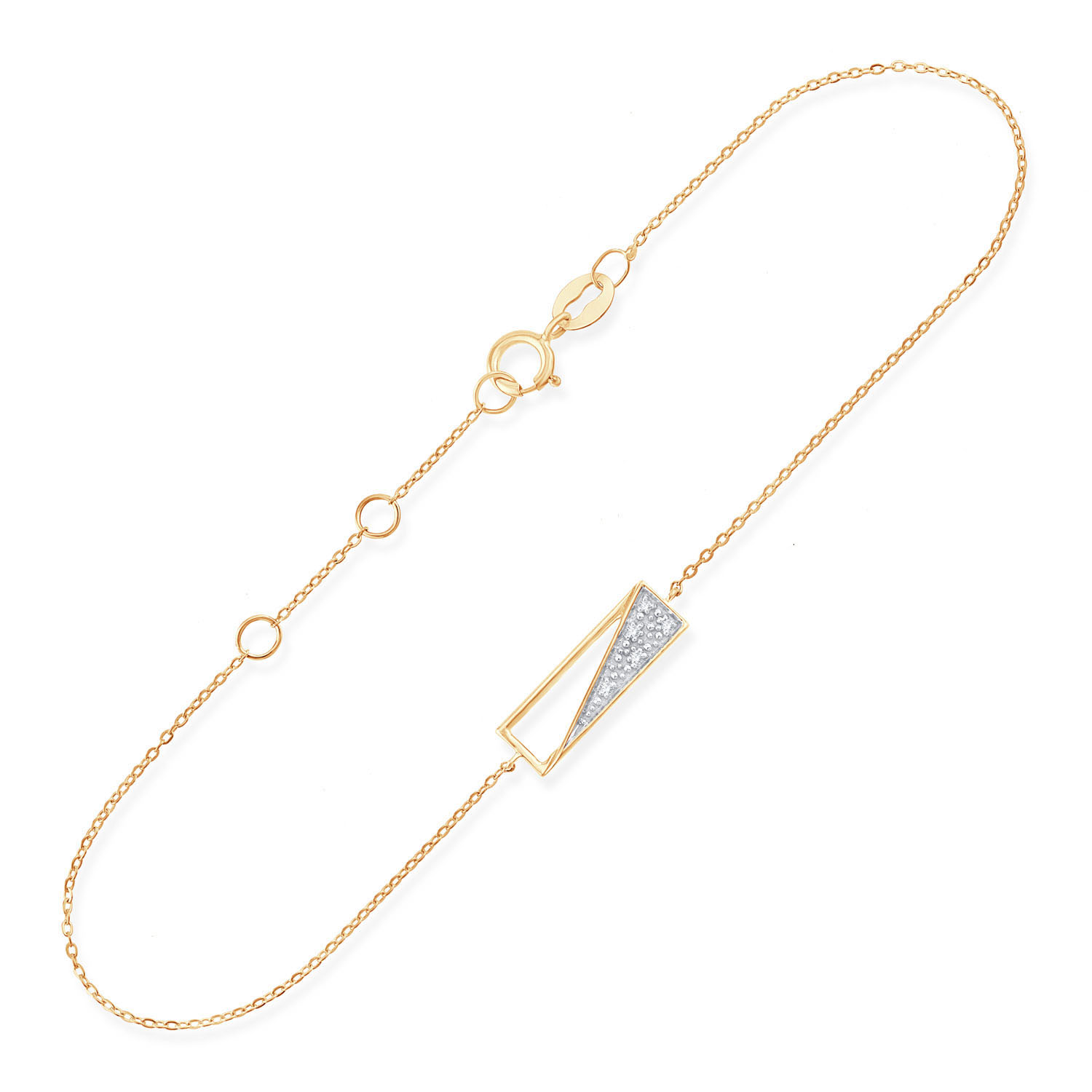Bracelet or jaune rhodié 9 kt et diamants.