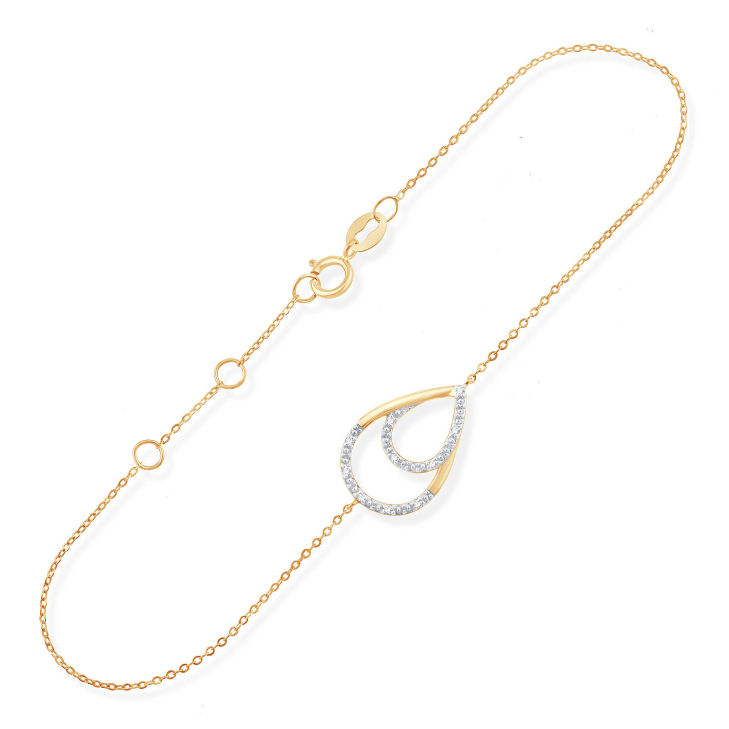 Bracelet or jaune rhodié 9 kt et diamants.