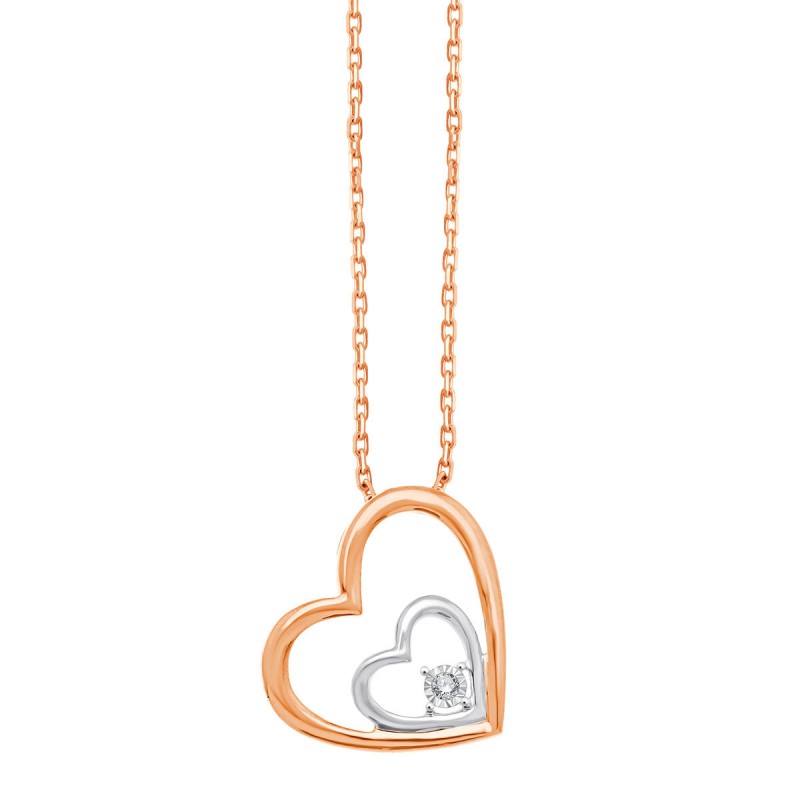 Le coeur, symbole le plus revisité se présente ici en version double, avec un petit diamant en son centre.