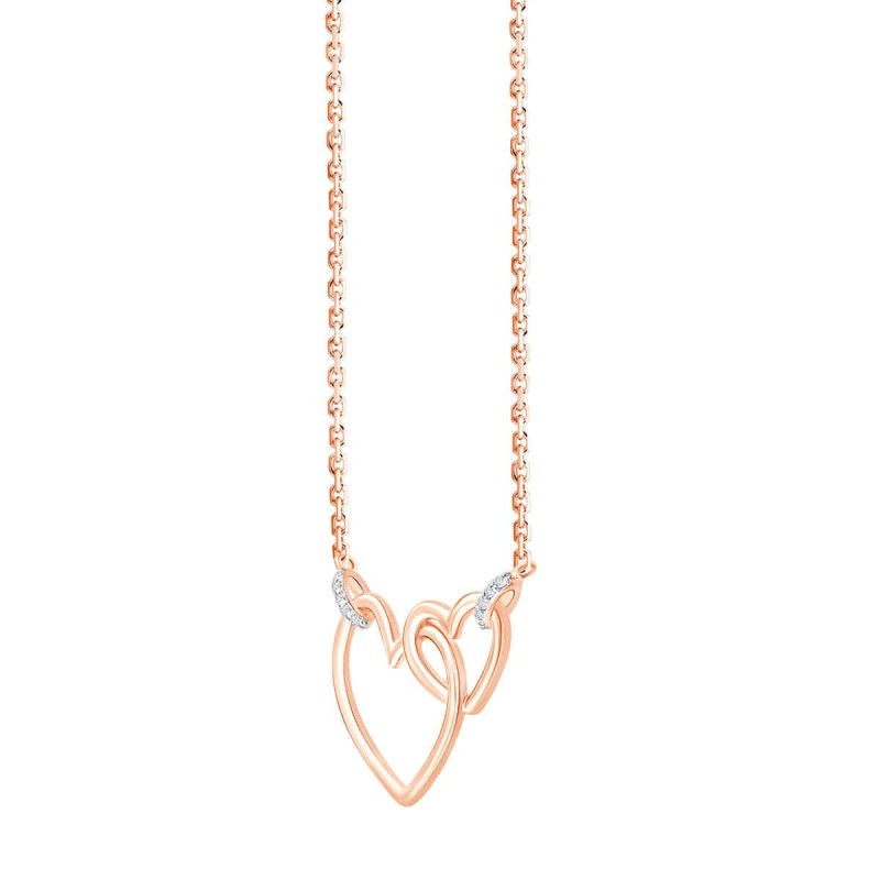 Façonnés par un fil en or 18 carats ces deux coeurs s'entrecroisent et bougent au gré de vos mouvements. Deux fines barrettes serties de diamant les relient à la chaîne.
