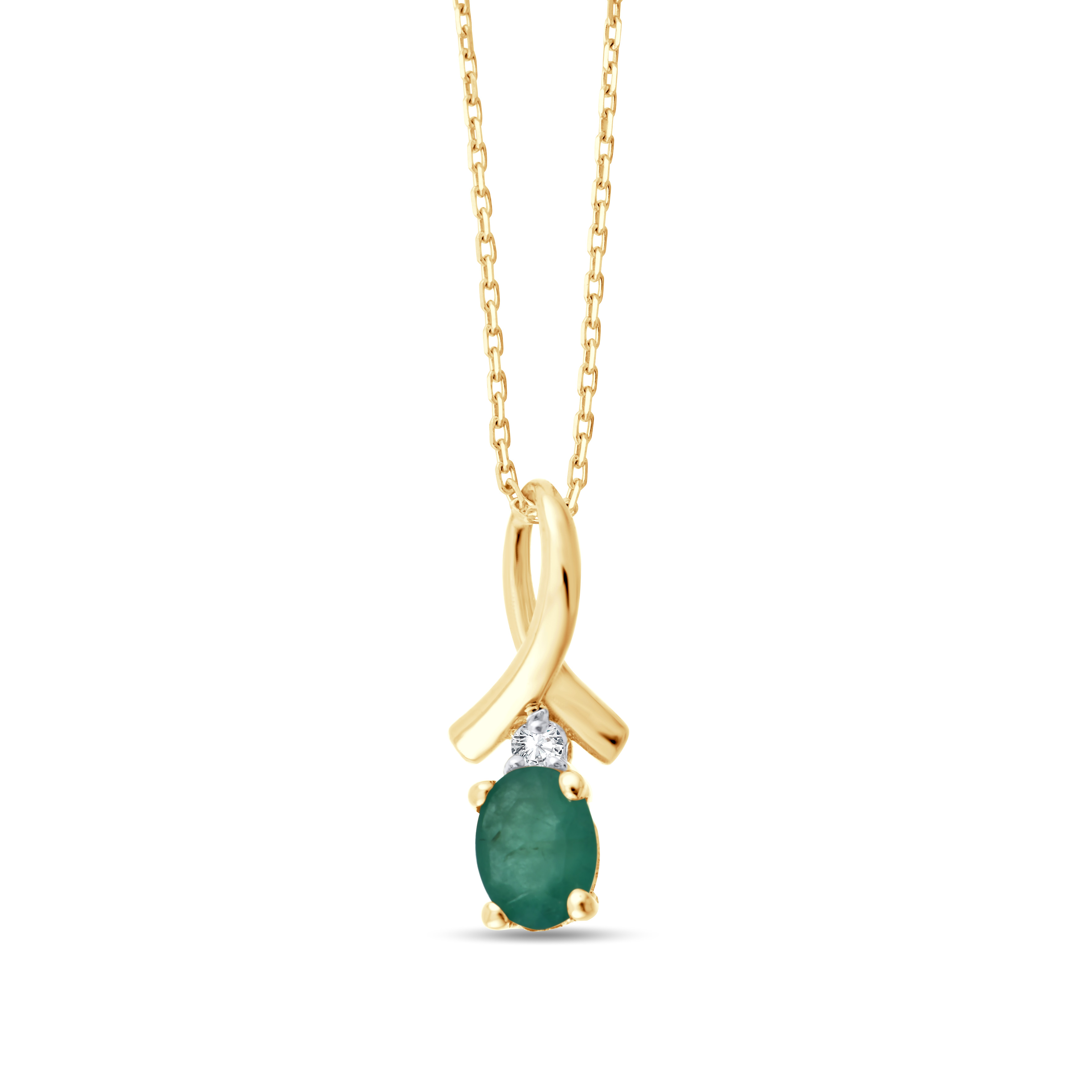 Collier en or jaune rhodié 9 carats emeraude et diamant.