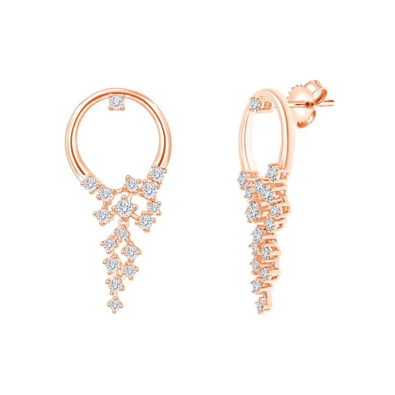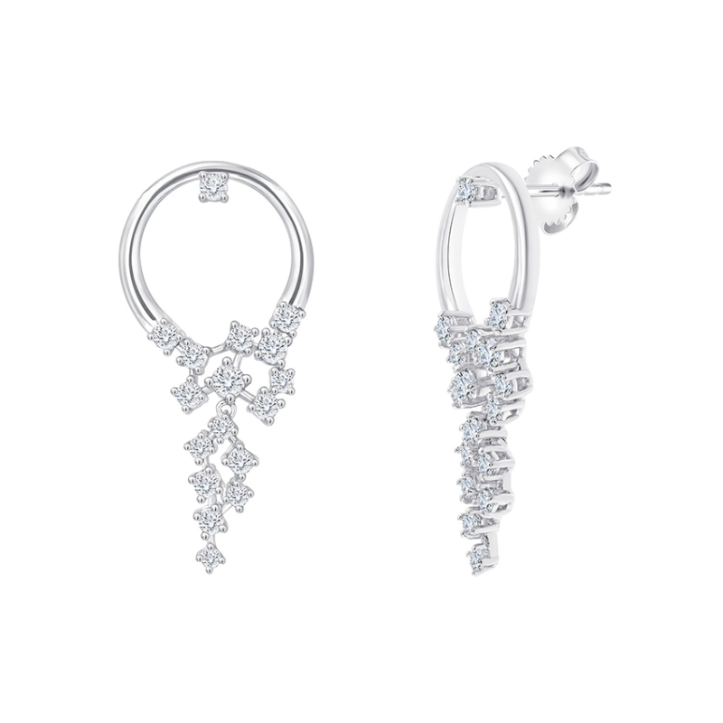 Ces boucles d'oreilles en or 750 millièmes se composent de 34 diamants sertis comme une grappe de raisin.