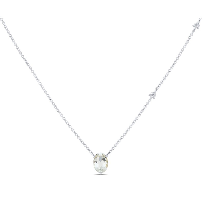 Les diamants sertis sur la chaîne de ce collier apporte une touche précieuse à la fraîcheur des couleurs des pierres fines.