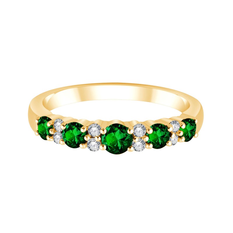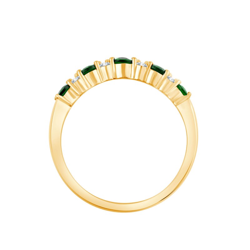 Les alliances Primvera évoquent la nature qui s'éveille, les bourgeons qui s'ouvrent aux premiers rayons du soleil. L'esthétique est soignée, féminine, les émeraudes et les diamants sont sertis tels des feuilles sur une branche.